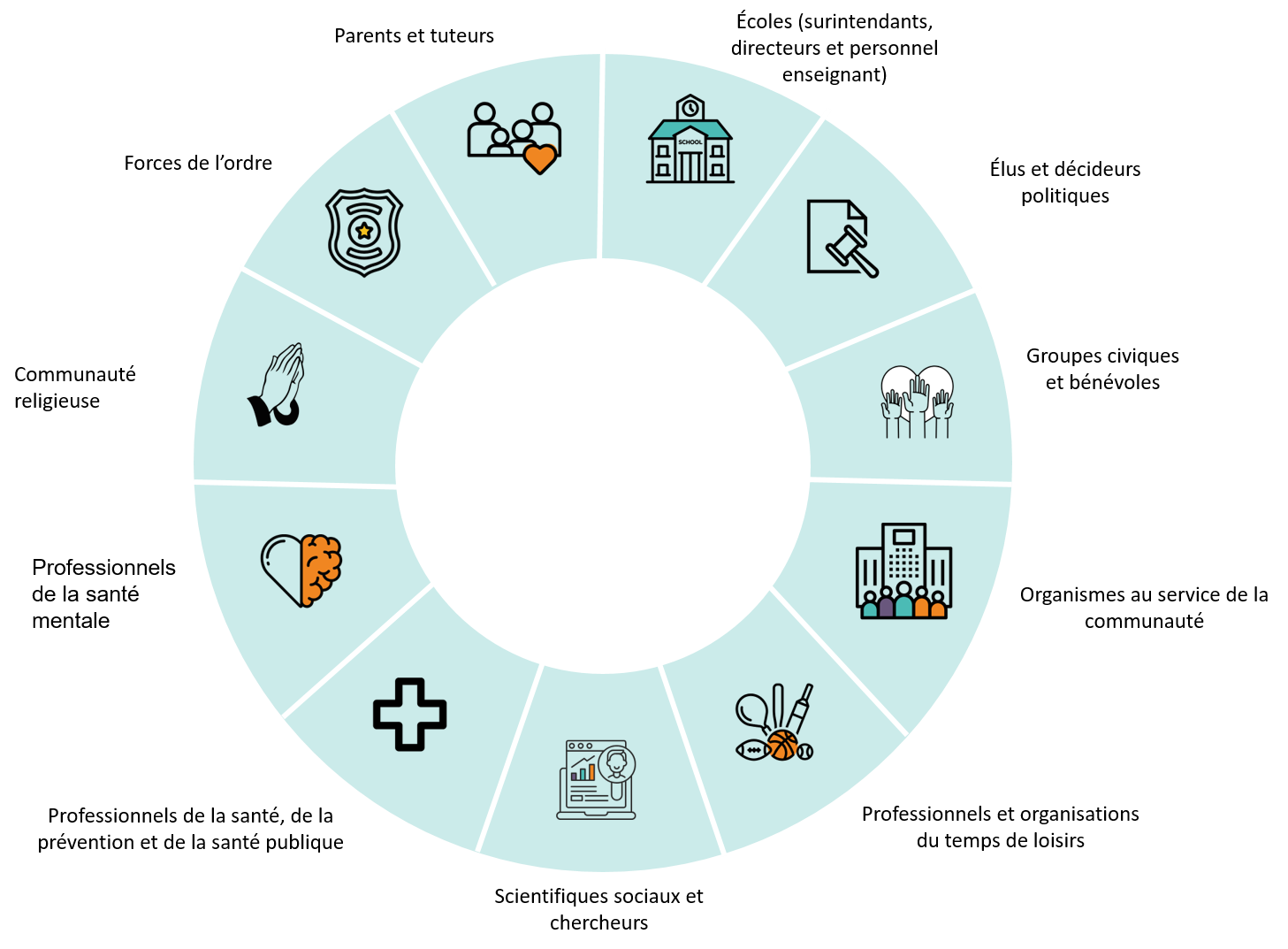 Les adultes en lien direct avec les jeunes (parents, corps enseignant, éducateur et associatif) sont pleinement impliqués. Cette logique de responsabilité collective permet de renforcer la cohérence et l’efficacité des actions menées.