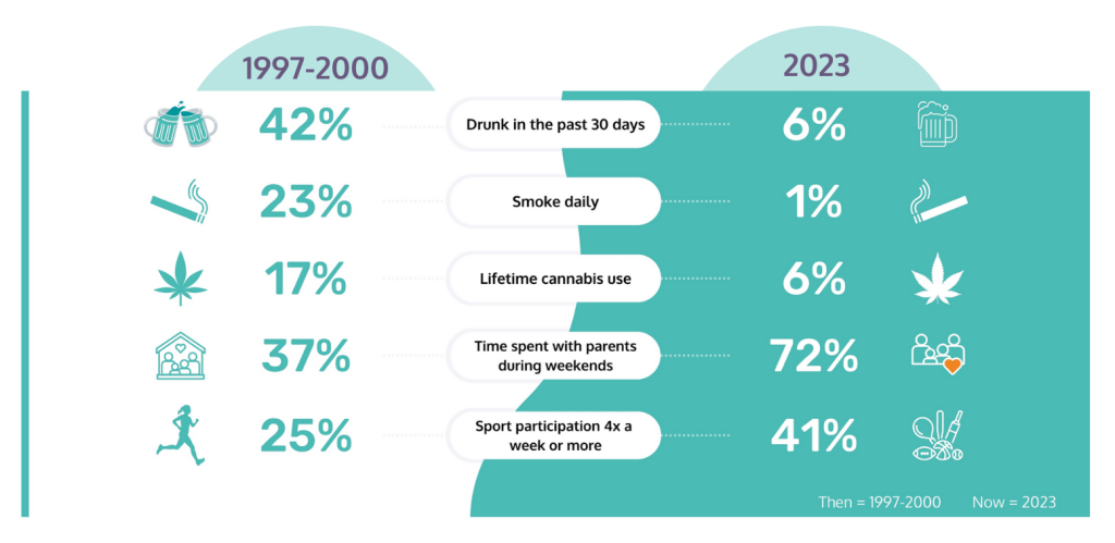Les résultats obtenus en Islande sont particulièrement parlants. En l’espace de vingt ans, la consommation d’alcool chez les jeunes de 15-16 ans est passée de plus de 40% à environ 5%. Le tabagisme et l’usage du cannabis ont également reculé, démontrant l’efficacité de cette méthode.